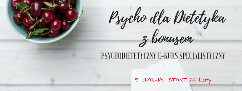 Zapraszamy na specjalistyczny, odświeżony E-kurs Psychodietetyczny „Psycho dla dietetyka (i nie tylko!)” z dodatkowym bonusem: zeszytem ćwiczeń dla specjalisty i klienta. Start 5 edycji: 24 luty!